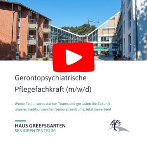 Das Seniorenzentrum „Haus Greefsgarten“ der Evangelischen Kirchengemeinde Viersen gGmbH sucht zum nächstmöglichen Zeitpunkt eine gerontopsychiatrische Pflegefachkraft (m/w/d) in Voll- oder Teilzeit.